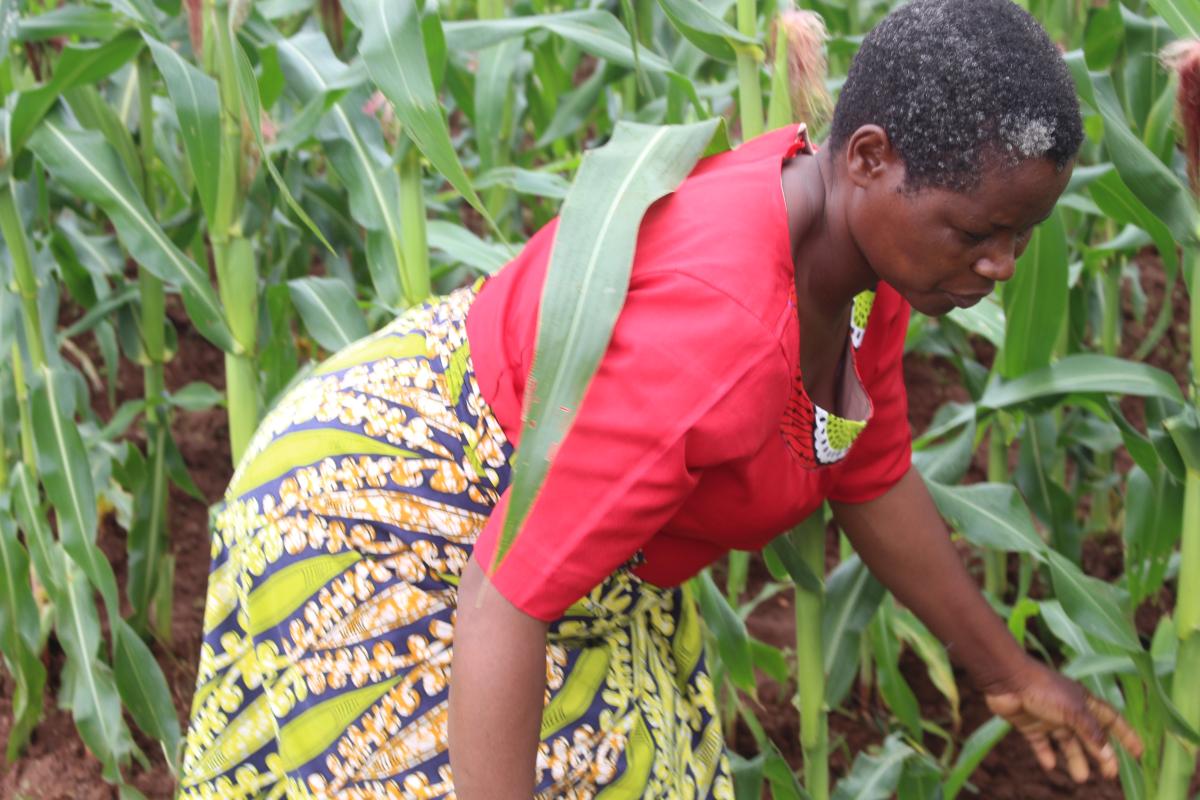 Ms Kitty Siliya Kaliza, working in her garden