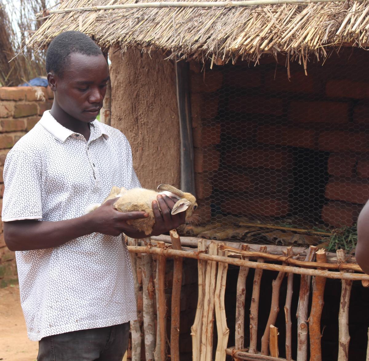 Matthews Binali, one of the rabbit beneficiaries under the CRI Project in Blantyre, Malawi