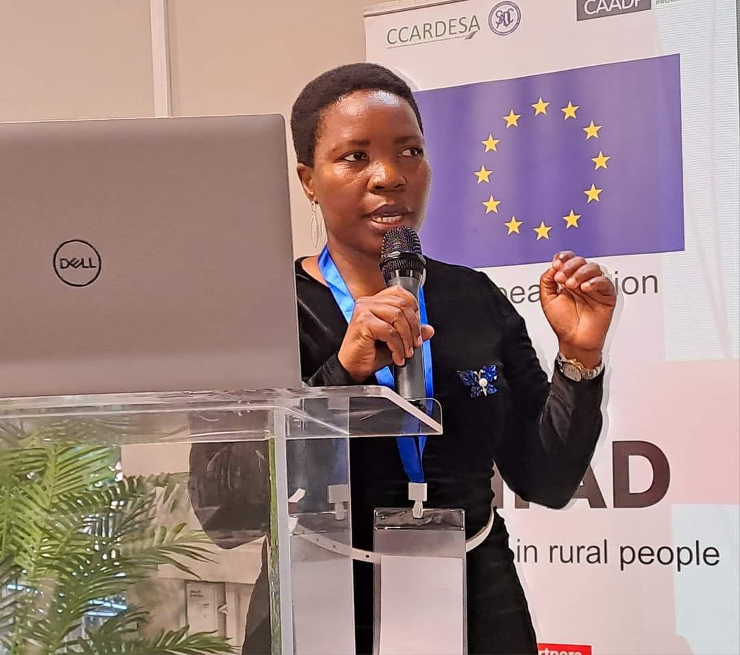 Ms. Futhi Magagula, the CCARDESA Program Officer, provided an overview of the organization's programs and achievements, underscoring the importance of ongoing Malabo commitment sensitization sessions previously held in five other CAADP-XP4 target countries (i.e., Botswana, Mozambique, Namibia, Zambia, and Tanzania).