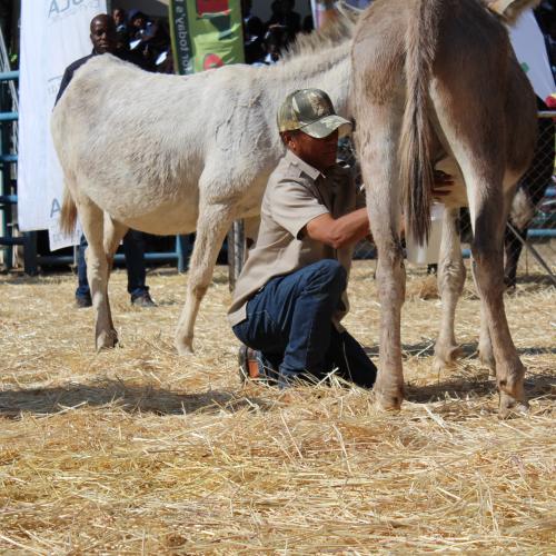 Johannes Visagie Milking a donkey at the Botswana Show
