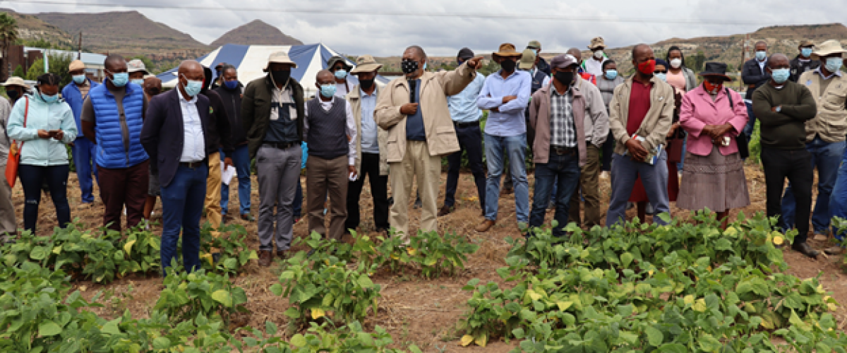 In an effort to observe Covid-19 protocols limited number of farmers and other relevant stakeholders were invited. Present were delegates from Ministry of Agriculture, Marketing and Food Security management; Mohales’ Hoek district administrator i.a; District Agricultural Officer; Director of Agricultural Research i.a; APPSA Project Director; representatives from non-governmental organizations; researchers from the National University of Lesotho, Lesotho Agricultural College, Department of Agricultural Researchers, farmers and seed producers.