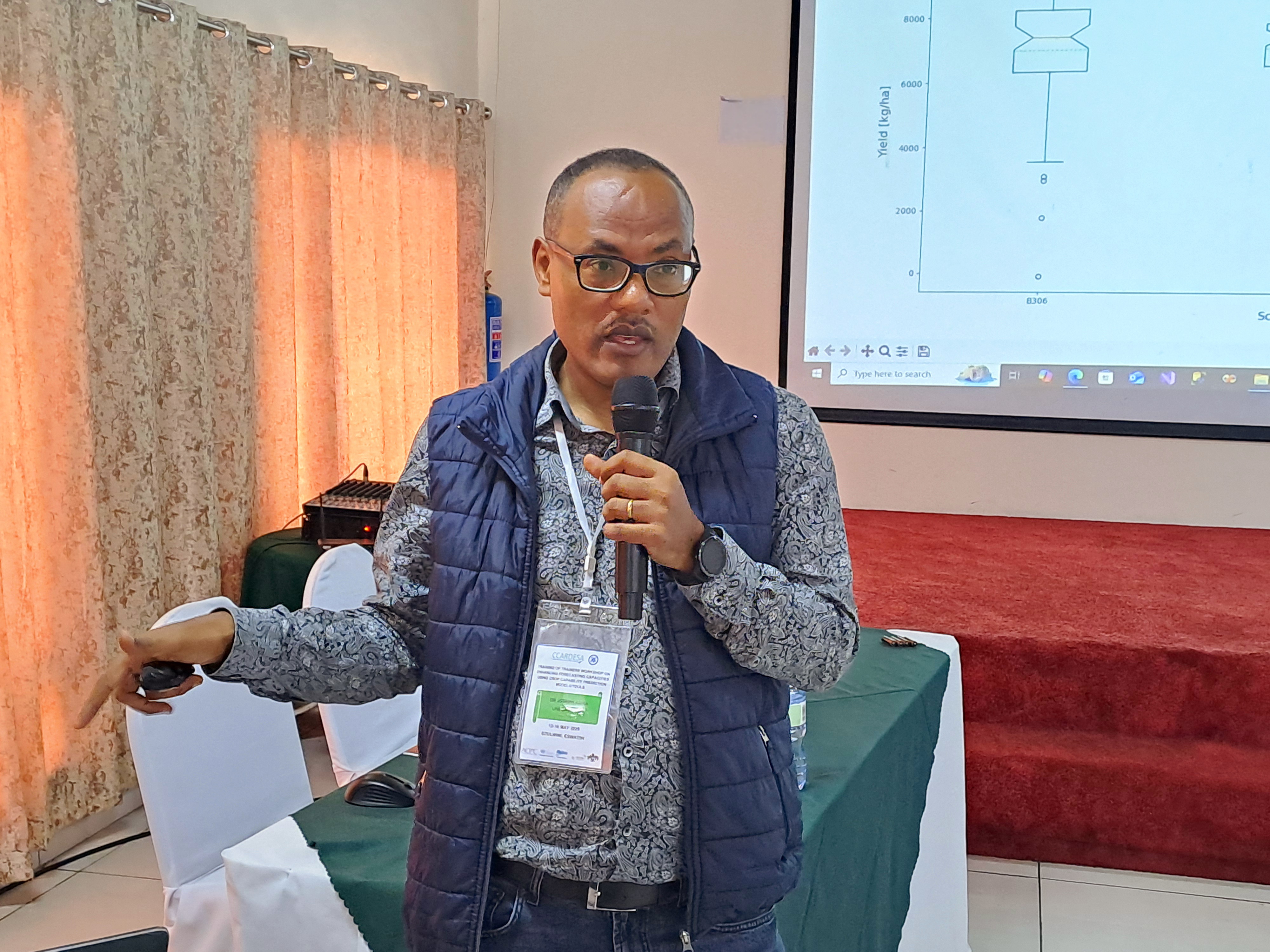 The objective of this training programme was to enhance understanding of the impacts of climate variability and climate change, equipping experts from different institutions with the necessary knowledge to make strategic management decisions aimed at mitigating risks associated with adverse climatic conditions while optimizing agricultural productivity that helps smallholder farmers better adapt to climate change and variability. To further efforts in risk reduction within agricultural systems, the training will concentrate on the generation and application of Climate Information Services (CIS). These services will deliver advanced advisories on climate dynamics and their implications for crop management practices. The outcomes of this workshop are designed to provide significant benefits to policymakers and user communities in deciding on the most up-to-date crop capability based on seasonal climate forecast (SCF). This will, in turn, help smallholder farmers to make informed decisions about what to plant, when, and how to manage resources efficiently. The tool helps reduce risks of crop failure, optimize input use, and improve income stability by forecasting yields and supporting market planning that enhance farmers' resilience to climate change by guiding sustainable practices and helping farmers adapt to shifting weather patterns.